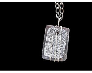 Upcycled tin and paper pendant with a minimalist design. Embe...